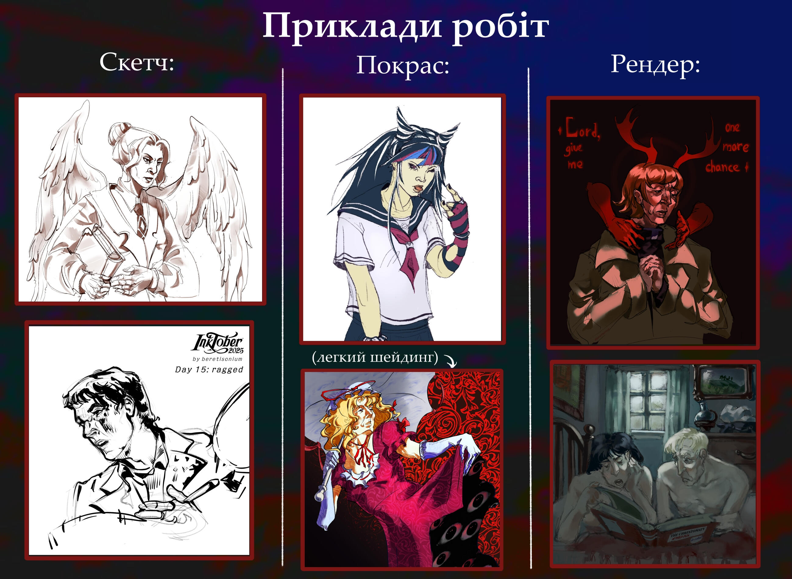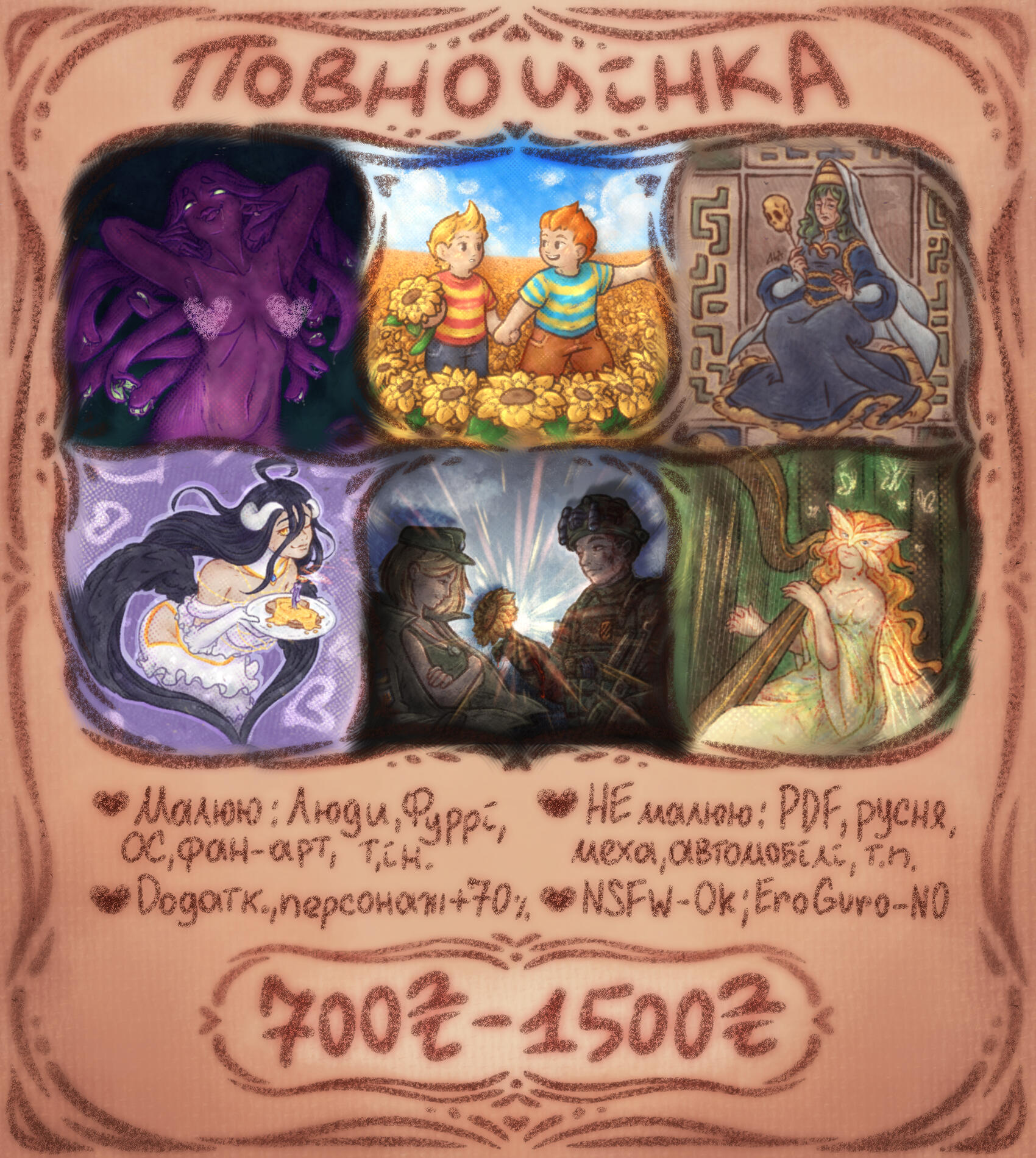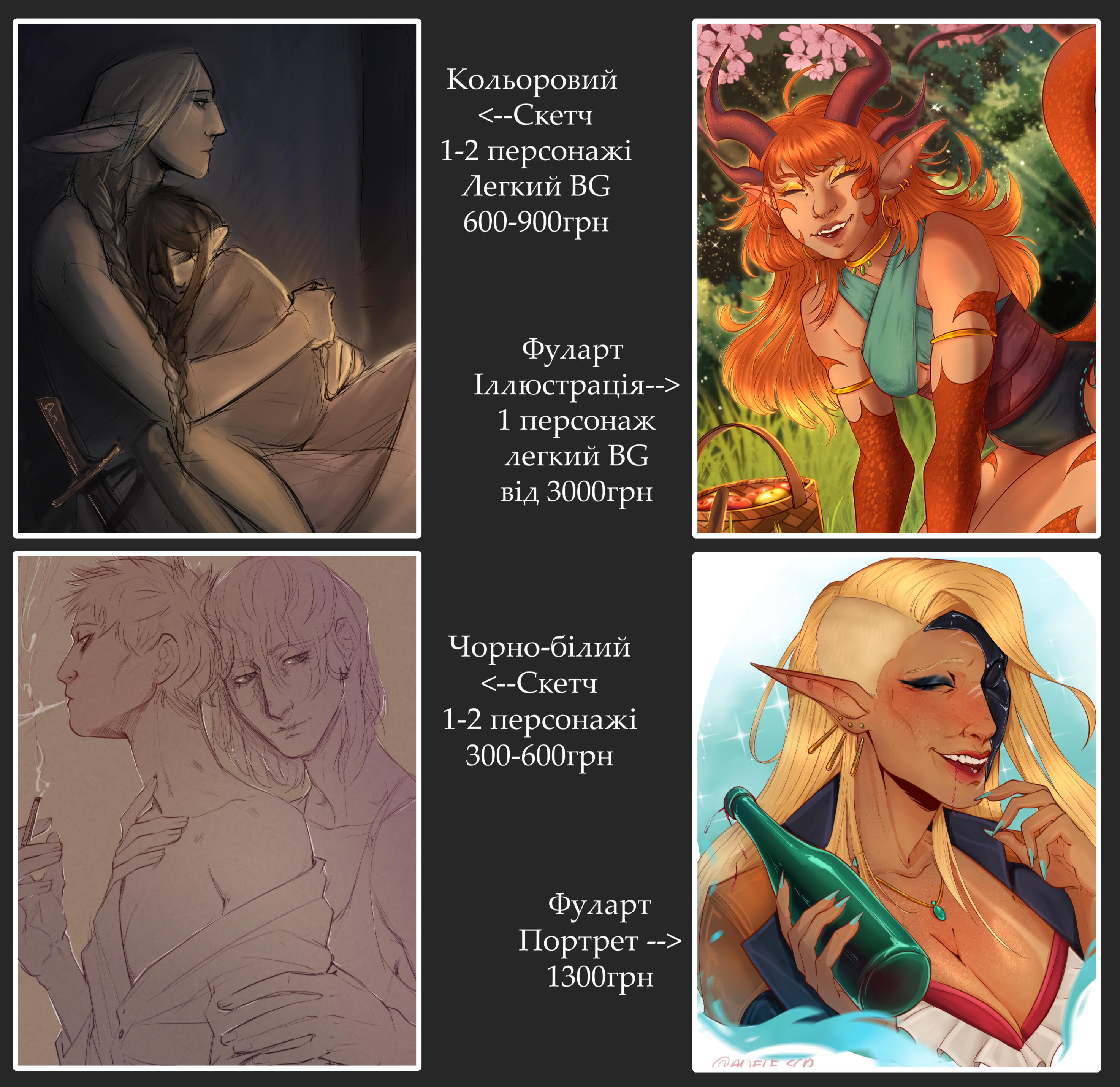 Фуларт ілюстрація (1 персонаж, легкий фон) - від 3000 грнЧорно-білий скетч (1-2 персонажі): 300-600 грн