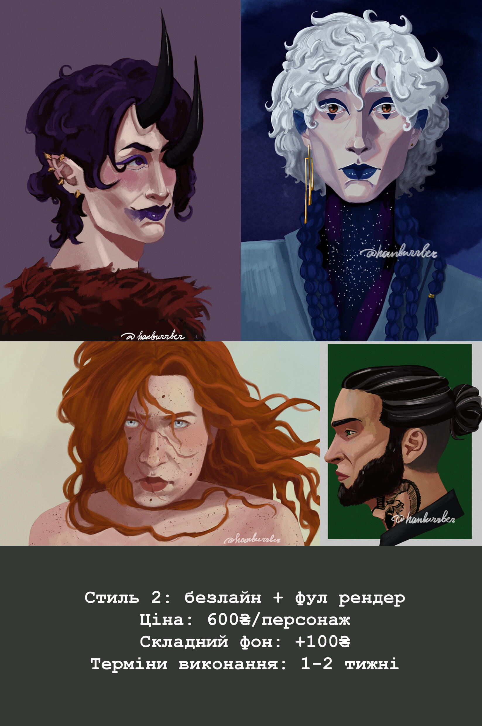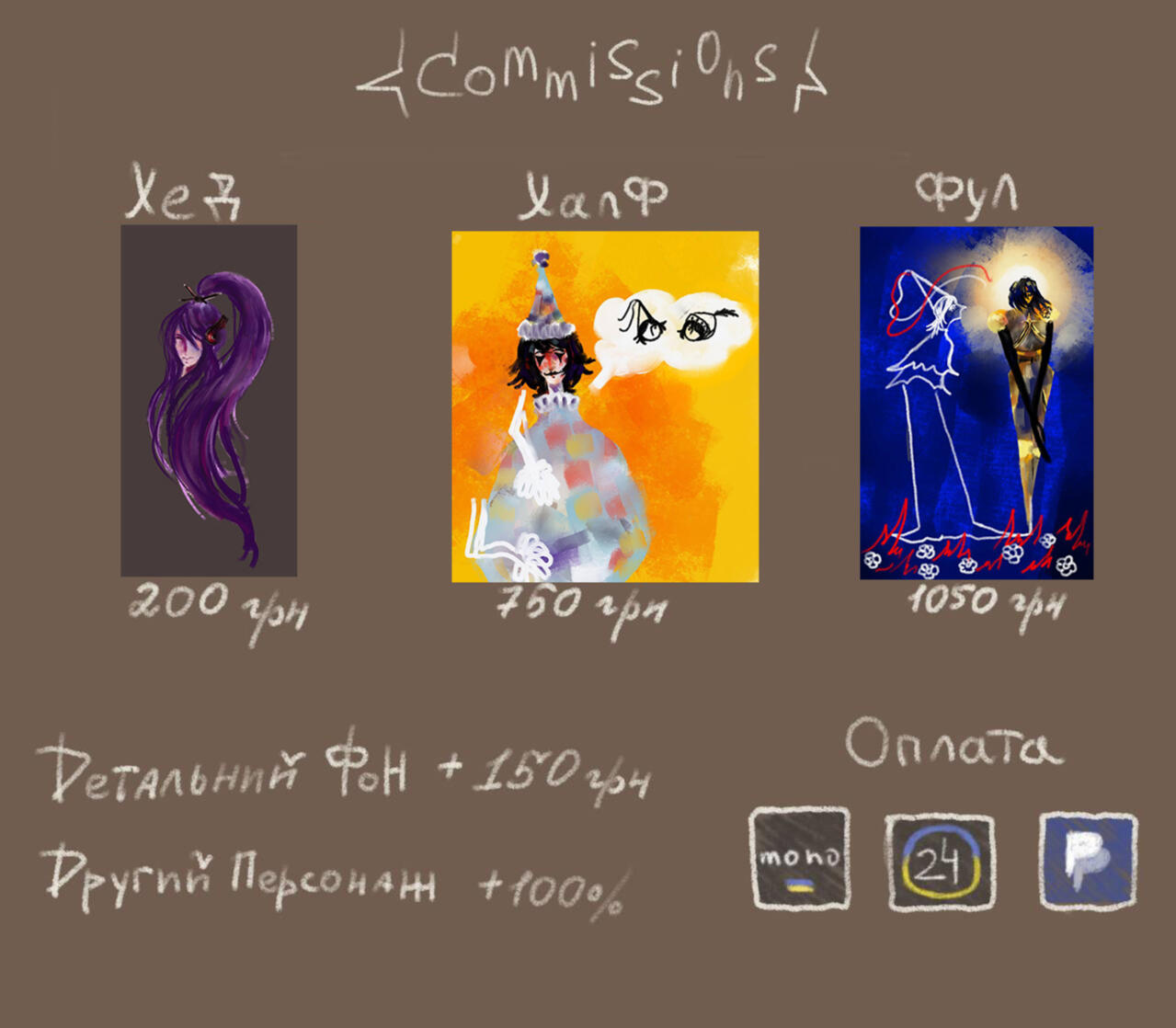 портрет 20$ / по пояс 25$ / повний зріст 30$