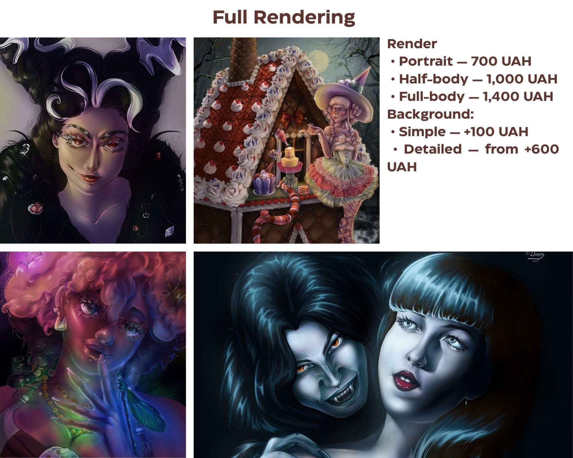 Рендер: портрет 700 грн, по пояс 1100 грн, повний 1500 грн