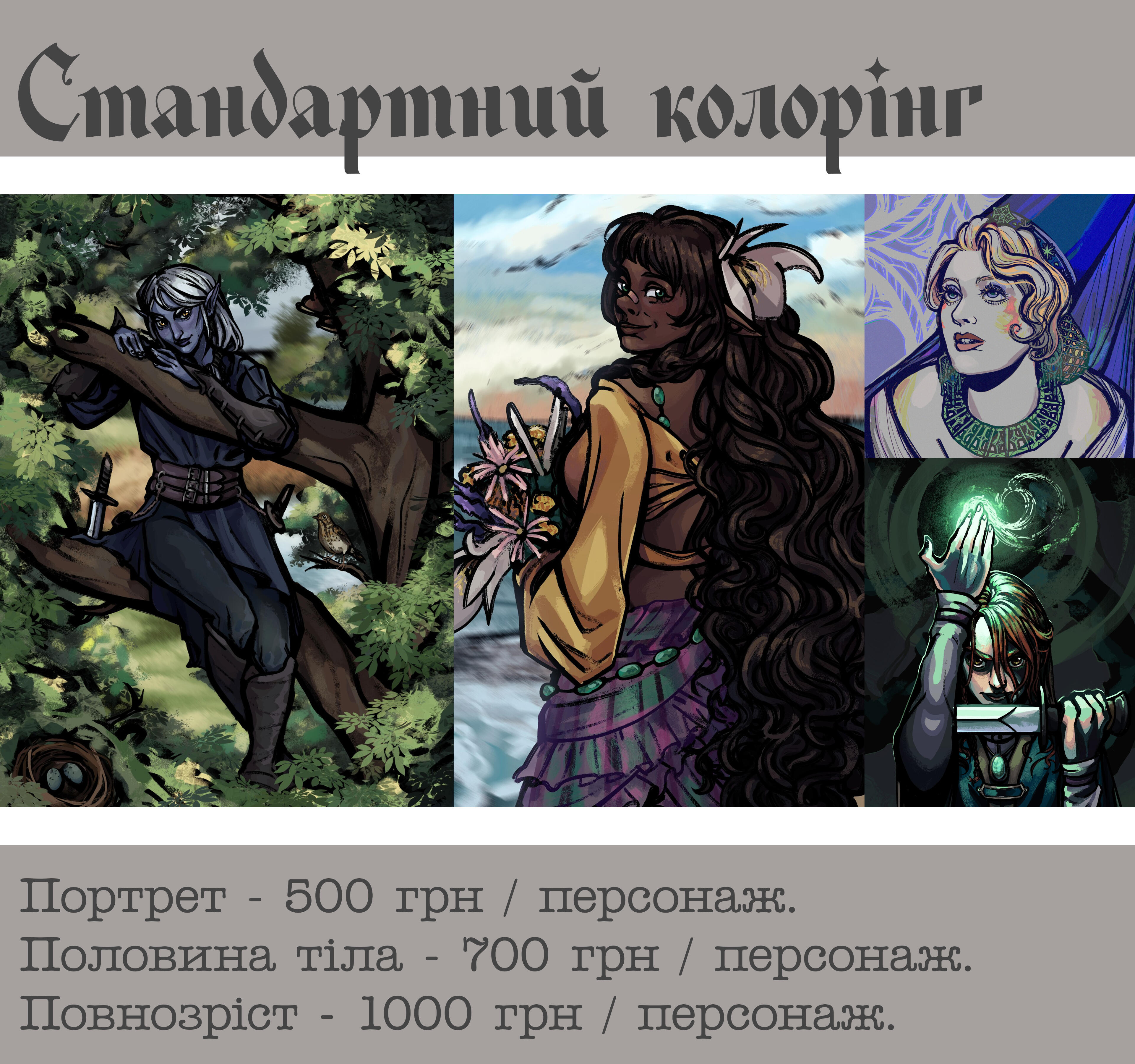 Портрет 500 грн / по пояс 700 грн / повний зріст 1000 грн/персонаж