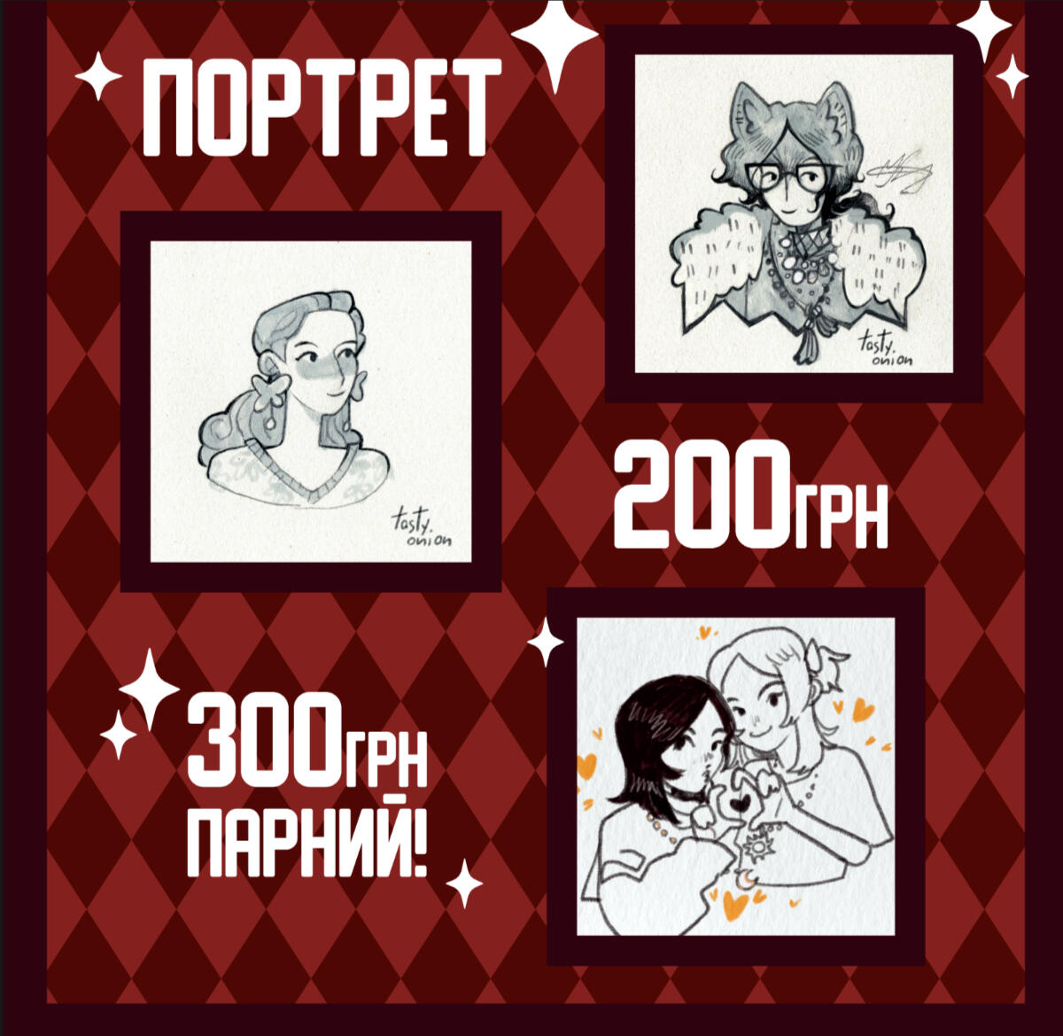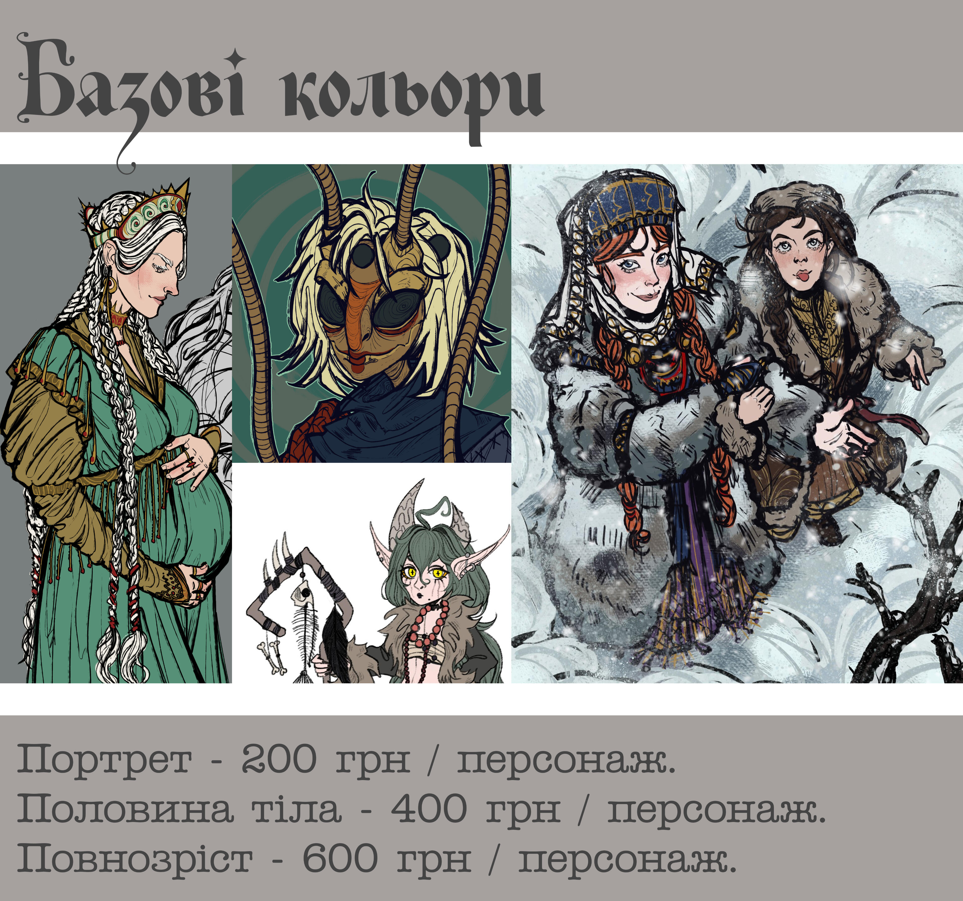 Портрет 250 грн / по пояс 350 грн / повний зріст 600 грн